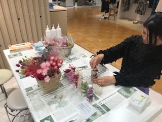 2階婦人服売り場のポップアップショップでアロマストーンとハーバリウム、アロマワックスを中心に認定講師の方にお手伝いいただき販売を致しました。