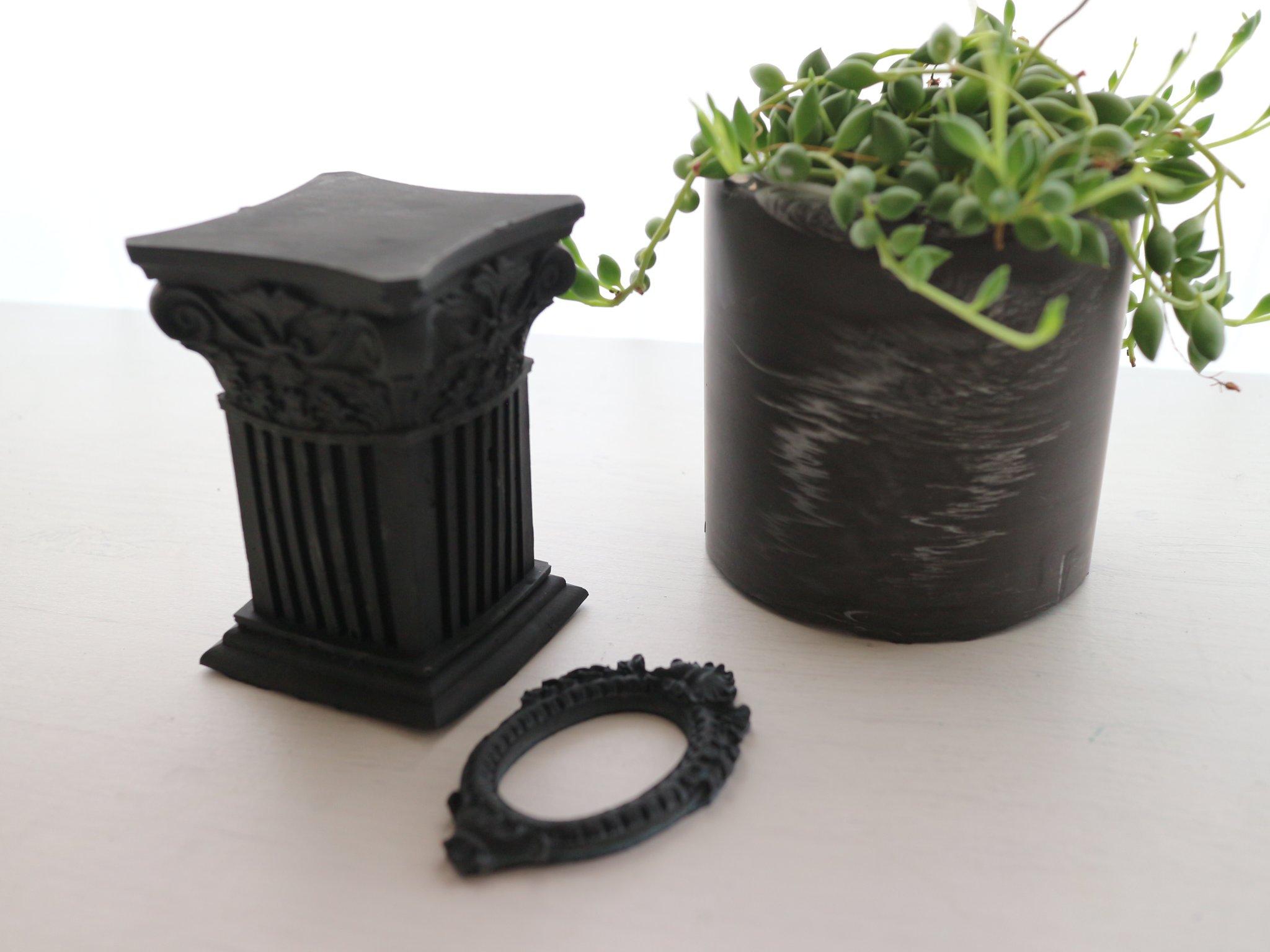 プラスチック特有のテカリ感がほとんどなく、石のような落ち着いた風合いをもつ素材です。アート、彫刻、家具、内装、ディスプレイ、アクセサリー、建築など、幅広い用途の立体物制作に使用可能です。(ジェスモナイトHPより)