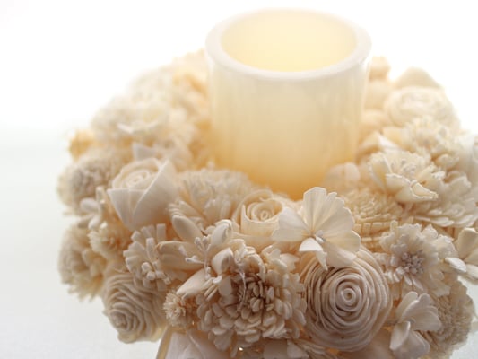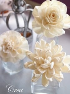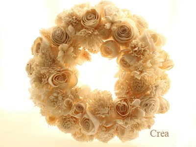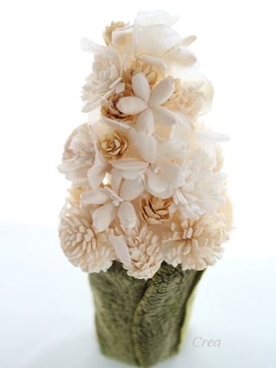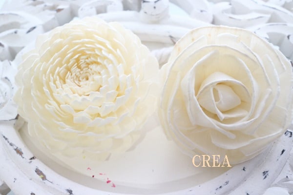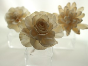 ソラフラワーは、ソラの木を薄く剥いで作られた一枚のシートから作り上げる、木のお花。
